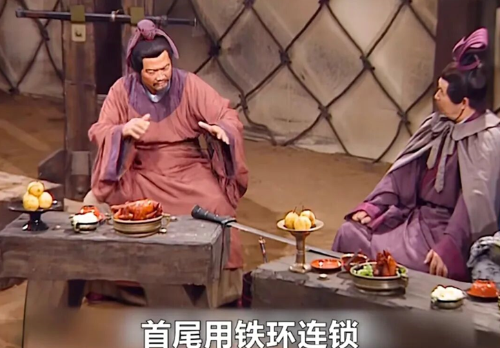铁锁横江,将曹军大船全部用铁锁链接在一起,使得不善水战的曹军在船上如履平地,减少颠簸。